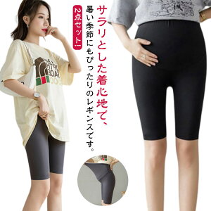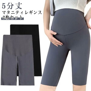 【2枚セット】 【マタニティ】【 5分丈】 【レギンス】シンプルで使いやすいマタニティ用レギンス。お腹周りを締め付けないので、楽ちんな着心地でマタニティママに大人気。通気性・吸汗性に優れた生地で、蒸し暑い夏でも快適な履き心