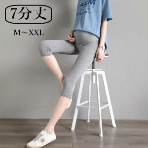 春夏に最適な3分丈マタニティレギンス 無地 綿 ハイウェスト 伸