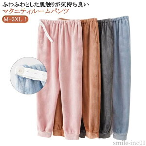M-3XL!ふわふわとした肌触りが気持ち良いマタニティルームパンツ。お腹周りはリブ仕立てで優しく包み込みます。保温性に優れ、秋冬の冷え対策にぴったりです。ウエストにはアジャスター付きで、お腹周りの調節もできます。産前から産