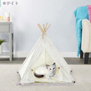 表地素材:オックスフォード内部素材:オックスフォード詰め物素材:PP綿【猫・小型犬用ペットテント】通気性もよく、ニオイがこもりにくいナチュラルテイストのペット用ティピーテント。テントと柄がお揃いのふかふかクッション付き