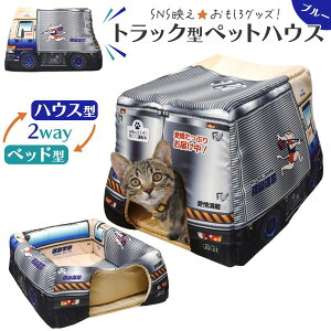 SNSで大人気間違いなしの面白グッズ!2Way トラック型ペットハウス ブルー大人気で完売していた商品に待望の新作登場!クールなブルーがトレードマーク!輸送トラックデザインのおもしろペットハウスです。ネコちゃん・ワンちゃんの好み