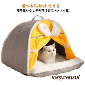 体重参考9kg以内 選べるS/M/Lサイズ 超可愛いウサギの耳付きのペット小屋ふんわりとしたベッドクッション!マットは取り外し可能。丸洗い可能です。ワンちゃんやネコちゃんにおす...