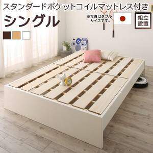 ネジなし、工具不要で簡単組立。お部屋に馴染むシンプルなデザインの宮棚とコンセント付きベッド。体型に沿うように点で支え、体圧を分散するポケットコイルマットレスセット ■カラー ナチュラル ■サイズ ベッド:(約)幅99×奥行207×...