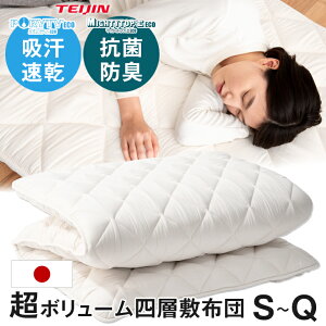 ポリティ 固綿 超ボリューム 四層敷布団 100×200cm 防ダニ 防臭 抗菌 速乾 吸汗 マットレス不要 国産 敷き布団 敷布団 敷きふとん S SD D Q