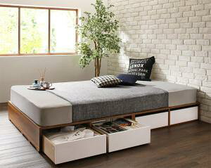 マットレス付き ベッド下収納スペース 高い 床下 大容量 ヘッドレス ヘッドボードなし 布団 直置き マットレス不要 フラット床板 土台 箱型 デザイナーズ ホテル モダン 高級 メンズ商品バリエーション薄型