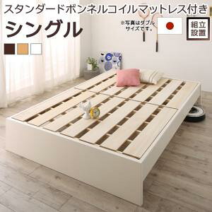 ネジなし、工具不要で簡単組立。お部屋に馴染むシンプルなデザインの宮棚とコンセント付きベッド。安定感のある寝心地のボンネルコイルマットレスセット ■カラー ナチュラル ■サイズ ベッド:(約)幅99×奥行207×高さ64×床面高32...