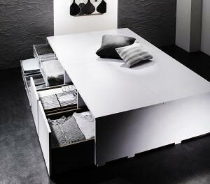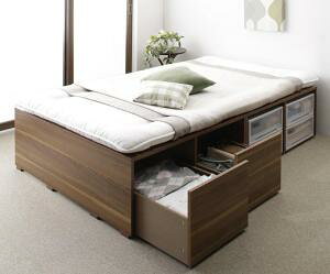 ハイタイプ ベッド下収納 引き出し付き 大容量 ヘッドレス ヘッドボードなし 布団 直置き マットレス不要 フラット床板 土台 箱型 デザイナーズ ホテル モダン 高級 メンズ