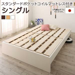 マットレス付き ローベッド ロータイプ フロア 低床 低い フラットヘッドボード 薄型 布団 直置き マットレス不要 脚付き 足付 ルンバ 土台 北欧 おしゃれ モダン アンティーク商品バリエーション標準ボンネルコイル