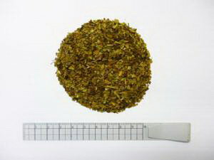 ●収穫した葉は24時間以内にサカペート(目開き:葉に直火をあて表面にひび割れを起こさせ、20%脱水する)し、1日ほどおいて乾燥させ水分率を5〜6%にします。 それを1cm角位にし、味と香りを高める為に約1年間貯蔵して熟成させます。熟成