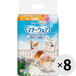 (商品名) ユニチャーム マナーウェア 女の子用 中型犬用 Lサイズ4種のデザインパック 4枚 (商品説明) お出かけ・お部屋での粗相・生理に安心!旅行・ドライブ・ お散歩・お留守番に。女の子専用タイプのワンちゃん用マナー...