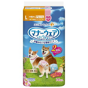 メーカー:ユニチャーム ユニチャーム マナーウェア 女の子用 Lサイズ モーヴピンクドット・ピンクチェック 32枚 中型犬用 4520699674697 犬用品 紙おむつ マナーパッド ナプキン 犬 中型犬...