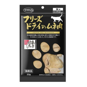 こちらの商品は【 宅配便 】でのお届けとなります。 ママクック フリーズドライのムネ肉 猫用 150g 低カロリーで脂質のおいしさ!ササミと交互に 商品名 ママクック フリーズドライ