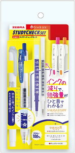 BJF-0.5芯(青)、サラサR0.4(ピンク、オレンジ)、マイルドライナー(ダークグレー)、チェックシート(赤) 【サラサスタディ特長】芯に目盛りがついてるため、インクの減り具合で勉強量が分かる