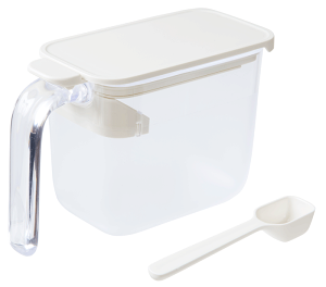 ワンタッチで簡単オープン。フタが奥に開くため手元が見やすく、さっと調味料をすくえます。 シリコーンゴムのパッキンが付いているので、しっかり閉まって湿気を防ぎます。 付属のスプーン小さじ1(5mL)をすり切れる板付きです。 すり切