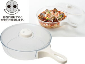 電子レンジで簡単調理が出来る調理器です。 フライパン形状で柄が付いているので、電子レンジから取り出やすく、 お料理の取り分けもしやすい浅型タイプ。切った食材と調味料などを入れてフタを閉じ、電子レンジで加熱すれば出来上が