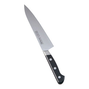 24cm 全長380mm 245g 背厚2.3mm高級炭素鋼と同等の硬度(HRC59〜60)がもたらす素晴らしい切れ味は調理師のめざす理想に限りなく接近。研ぎやすく長切れする品質の高さと、錆びにくさは画期的最高級クラスです。AMS21713