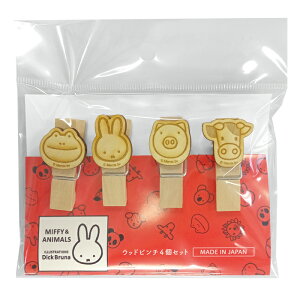 ウッドピンチ4個セット クリップ ミッフィー ミッフィー&アニマルズ ディックブルーナ ナガノファクトリー 木製 事務用品 絵本メール便可書類 整理 収納 クリップ 文具 文房具 おしゃれ 雑貨ディッ...