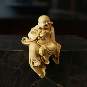 製品詳細この商品について 【素材】:黄楊木 サイズ:高さ9cm×巾5.9cm×奥行4.3cm / 手作業で測ったので少しの誤差が有ります(1cm以内)。 太鼓腹を露出して大きな袋を背負う布袋の置物です。布袋様は七福神の一人です。布袋様...
