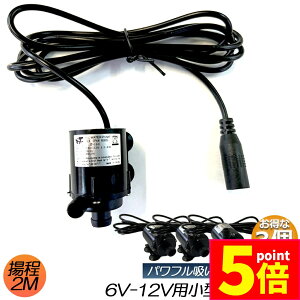 DCコード(アダプター無し)、 作動電圧:DC6V〜12V、最大消費電力:4W。最大吐出量:240L/H(揚程0mの場合)、最大揚程:2.2M、コードの長さ:1.4メートル。