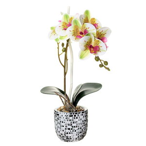 -------商品詳細------- 全高:19cm;セラミック植木鉢:底径9cm、高さ9cm 生花と間違えてしまうくらいに本物にそっくりです。 夏の蒸し暑い時期は、冬は暖房が効いている部屋で水も花も傷つきやすいのですが、造花...