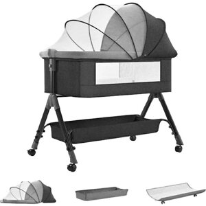 高さ3段階調節可能で、各高度の大人ベッドにくっつけてご利用可能です。引き込み式のキャスターは、ベビーベッドを大人のベッドに近づけます。同時に、キャスターにはブレーキが装備されており、それを引き下げることでベッドに固定することができます...
