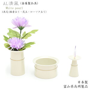 《商品説明》 商品 三具足 仏具セット 特徴 丈夫な金属製のお道具3点セットです。 ミニ仏具なので、小型のお仏壇にセットしやすいサイズです。 上品なシンプルデザインです。 コンパクトなお道具ですので...