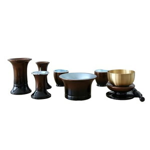 【サイズ】3.0寸(幅:28x奥行:22x高さ:9.5※仏具の外箱サイズ) 【材質】樹脂製 【セット内容】花立・前香炉・灯立・茶湯器・仏器・線香立・リン/リン棒