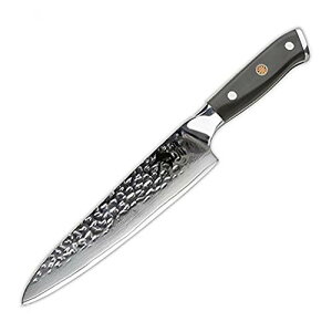 槌目ダマスカスにサビに強く切れ味の鋭いVG10を割り込んだ高級感のあるペティナイフです。■衛生的で丈夫なツバ付き柄と刃の間にツバがあるので、食材の汁などが入りにくく衛生的です。また、水気が入らない分、柄が傷みにくい構造とな