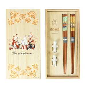 木箱に入ったムーミンのペアのお箸セット。ムーミンのキャラクター達とバラのイラストが描かれた木箱に入っているのでプレゼントにもおすすめです。サイズ:箸/約23cm、箸置き/約幅5×奥行2.5×高さ1.5cm...