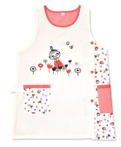 ムーミン エプロン サーモンピンク/アイボリー 【ST-IM0059】左サイド前ボタン かぶりタイプ、 右前ポケット×1、 左サイドポケット×1、