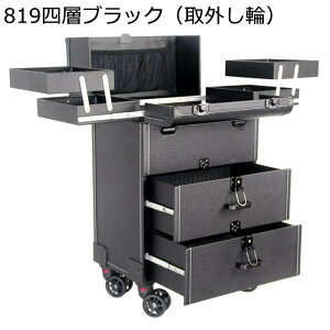 のキャスター4個つきなので、たくさん入れても持ち運びが楽です。同時に、ブレーキも可能です。プロのメイクアップアーティストが現場で使用している、非常に