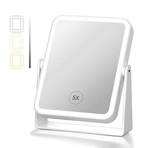 鏡 卓上ミラー ライト付き 女優ミラー 化粧鏡 3光色 無段階調光 等倍&5倍両面鏡 5倍拡大鏡 卓上鏡 化粧ミラー メイクアップ 360度回転 USB充電式 角型 長方形 ホワイトブランド色ホワイトモ...