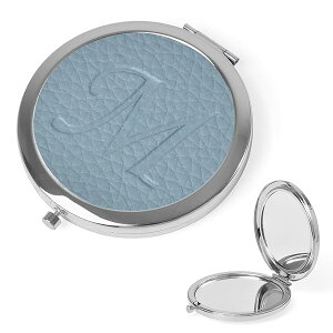 コンパクトミラー 両面鏡 手鏡 2倍 拡大鏡 持ち運び便利 円形 携帯 メイクミラー 角度調整可 折りたたみ鏡 化粧鏡 かわいい イニシャル 女性 超軽量 人気 誕生日 誕生日 母の日 ギフト(Mブル...