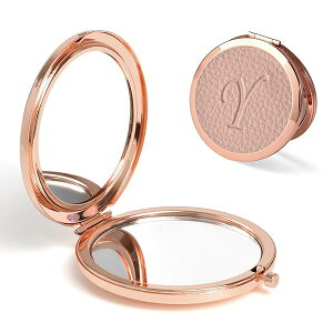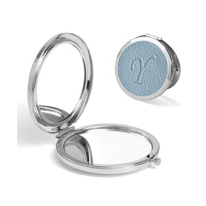 コンパクトミラー 両面鏡 手鏡 2倍 拡大鏡 持ち運び便利 円形 携帯 メイクミラー 角度調整可 折りたたみ鏡 化粧鏡 かわいい イニシャル 女性 超軽量 人気 誕生日 誕生日 母の日 ギフト(Kブル...