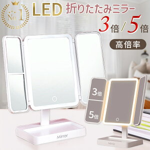 卓上ミラー 女優ミラー LED ライト 付き どこでもメイクがしやすい三面鏡 LEDライト付きで化粧ムラもよく見える 2倍・3倍の拡大鏡と、吸盤で固定できる10倍拡大鏡付き キメ細かいメイクもラクラク...