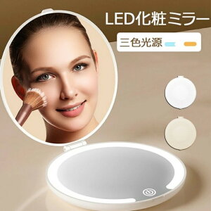 折りたたみ 女優ミラー 日光女優ミラー卓上ミラー LEDライト 三色調光 明るさ調節 拡大鏡 USB充電 コンパクト 持ち運び