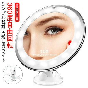 折りたたみができるので使わないときはコンパクトに収納 ●LEDライト付きで暗いところでもメイクが可能 ●10倍拡大鏡付き ●メイクの細かい部分までチェックできる ●コンパクト&軽いので持ち運びにも便利 ●角度調整も