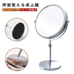 6/7/8インチ 3/5/10倍拡大 両面使える卓上鏡、シンプルなデザインの卓上鏡鏡は表裏にくるりとまわして両方使えます。鏡面部分はなんと、360度・自由な角度に回転可能。好きな角度に固定可能。その時々の使いやすい角度に、簡単に変えられる