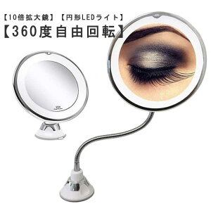 10倍拡大鏡 化粧鏡 LED化粧鏡 卓上鏡 浴室鏡 女優ミラー メイクミラー 壁掛けメイクミラー 吸盤ロック付き LEDミラー LED 360度回転ミラー スタンドミラー。直径約12CM 高さ約19CM...