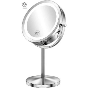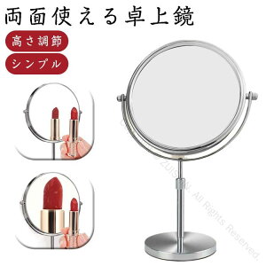 【両面使える卓上鏡】【6〜8インチ】【3倍拡大 5倍拡大 10倍拡大】シンプルなデザインの卓上鏡です。鏡は表裏にくるりとまわして両方使えます。鏡面部分はなんと、360度・自由な角度に回転可能です。好きな角度に固定可能。その時々の使