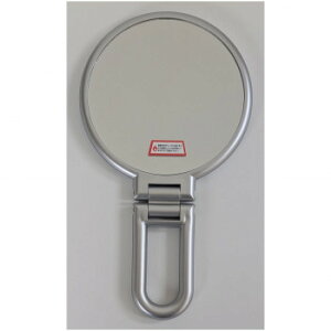 持ち手部分を折り曲げて卓上鏡、伸ばして手鏡として使えます。アイメイクや視力の弱い方、日々のスキンチェックに便利な超高倍率ミラーです。片面は等倍鏡のWミラータイプです。