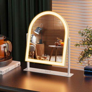 【新しいデザイン女優ミラー】アーチ型のライトストリップデザインにより、顔全体を照らし、メイクをより鮮明にすることができます。大きな卓上ミラーは、メイクをしたり、アクセサリーをつけたりするのに十分な大きさです。360度自由