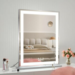 身支度 ?超大型サイズ:ハリウッド化粧鏡、大サイズ(35.9インチx24.3インチ/91.1x61.6cm)、化粧、自撮り、生放送に十分です。美容と明るい化粧鏡が更衣室を飾っています。 ?明るさと3色のライトを調整できます。タッチコン...
