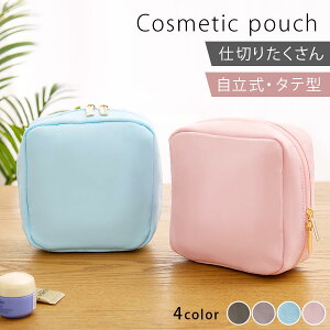 メイク道具を立てたまま収納できるポーチ。 ・安定感のある自立型 しっかりと自立するため安定感もあり、 使いやすく取り出しやすい設計となっています。 ・高さがあるタテ型 高さのある設計のため普段持ち運びに困る化粧