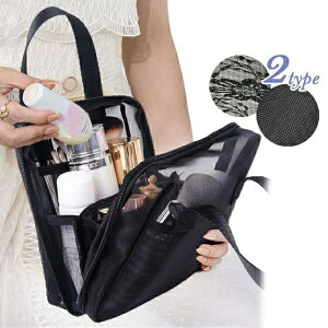 【収納場所が管理しやすい】半透明メッシュのデザインになっているため、プライバシーを保護しながら、持ち物を簡単に見つけることが可能です。ハンドル付きのため、ハンガーや洗面台にサッと吊り下げて使うこともできます。 【幅広い