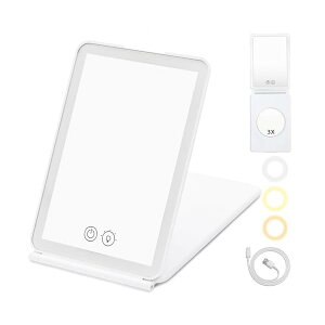卓上鏡 化粧鏡【三色ledライト・ 無段階輝度調整・拡大鏡3倍】 女優ミラーきミラー 折りたたみ 卓上ミラー コンパクト USB-C充電式 卓上ミラー タッチ式 メモリー機能 角度調整 鏡 ライト付き...