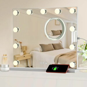 ビッグの高輝度LED電球で囲まれた女優ミラー:通常より大きいサイズの立体的な高輝度LED電球を搭載された女優鏡です。天候や場所の影響を受けずに、しっかりした明るさでメイクアップし、ハリウッドスターの気分で毎日を楽しめます。商品