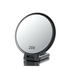 手鏡 拡大鏡 20倍 折りたたみ両面ハンドル付き化粧鏡 コンパクトミラー 20倍と等倍 卓上ミラー コンパクト 持ち運び便利 円形 13.7CM ブラックブランド色ブラック 20Xモデル1310B-2...