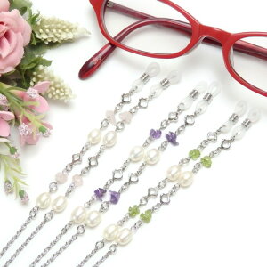 つけるだけでいつものメガネが華麗にドレスアップすること間違いなし! 清楚な淡水パールと天然石で運気もアップ!! 素材:淡水真珠6.0〜6.5mm・天然石さざれ、真鍮 長さ:約75cm...