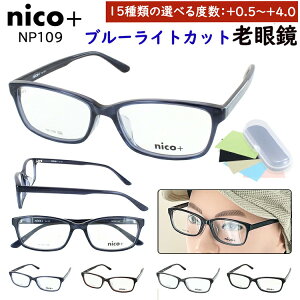 nico+ ニコプラス ブルーライトカット 老眼鏡 リーディンググラス メンズブルーライトカット、UVカット仕様パソコンやスマートフォン・テレビなどから発せられるブルーライトを約33%カット。特殊コーティングにより、視界のチラつきやまぶ